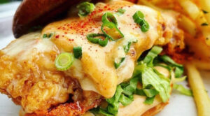 Grilled Marinated-Chicken Breast, Bacon, Worcestershire Glazed Caramelized Onions, Garlic Aioli, Shredded Lettuce, Tomato, Brioche Roll $17